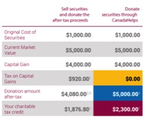If a donor were to sell their securities or mutual funds and then donate the cash to your charity, they would be responsible for paying capital gains tax on the appreciated value—meaning the amount of money they have available to donate is less. But if they arrange to donate the securities directly to your charity, they will receive a tax receipt for the full value of the shares at the time of sale, and your charity will receive the full value of the gift with nothing lost to taxes.