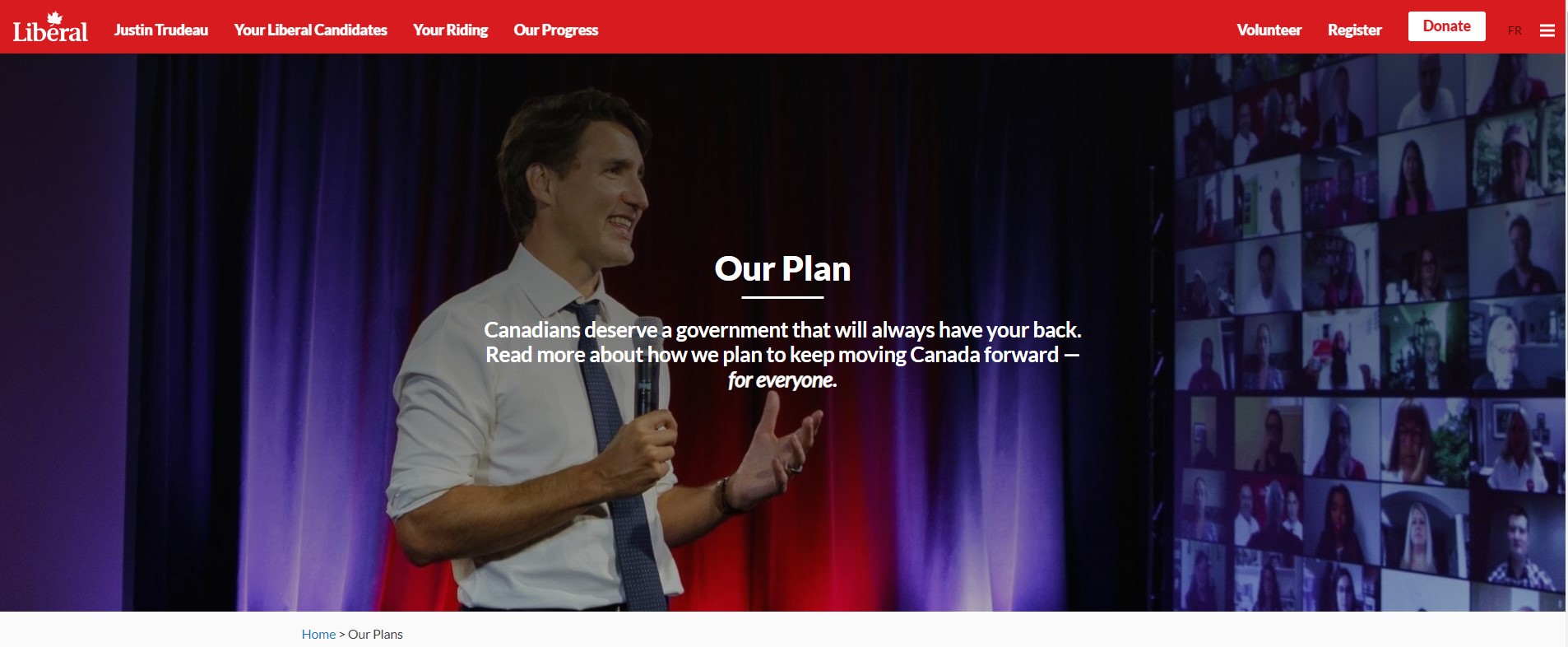 Every site has a single large photo. While it can be tough to choose a single image to capture what a political party wants to convey, it is also visually powerful. If your charity has more than one large photo on your landing page, you need to ask yourself if you are having the impact you want on potential donors.